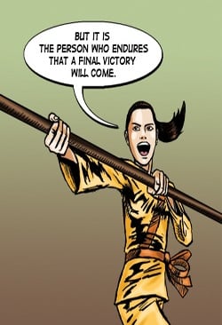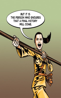 Sarah Mei Chang was born in New York City. From an early age, she enjoyed watching martial arts television shows and would imitate the moves for fun. However, her enjoyment was cut short when her parents were murdered when she was just 8 years old. She was then sent to a temple to learn about the doctrine of impermanence as well as martial arts.